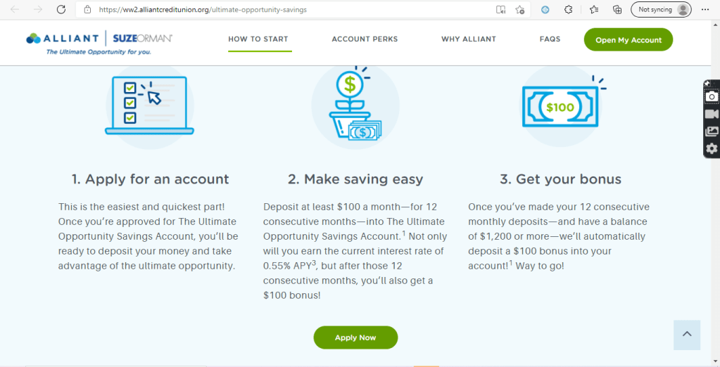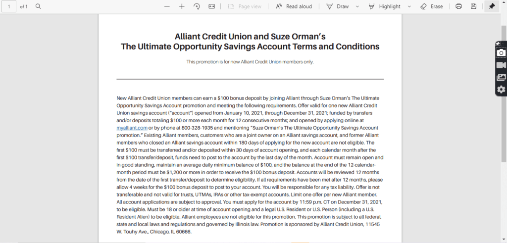 4) Based on this account through the terms and conditions they want $100 deposit monthly for 12 months. Then you will earn the $100 offer for the account. The terms and conditions are usually at the bottom of the page or they might have it in a PDF file.